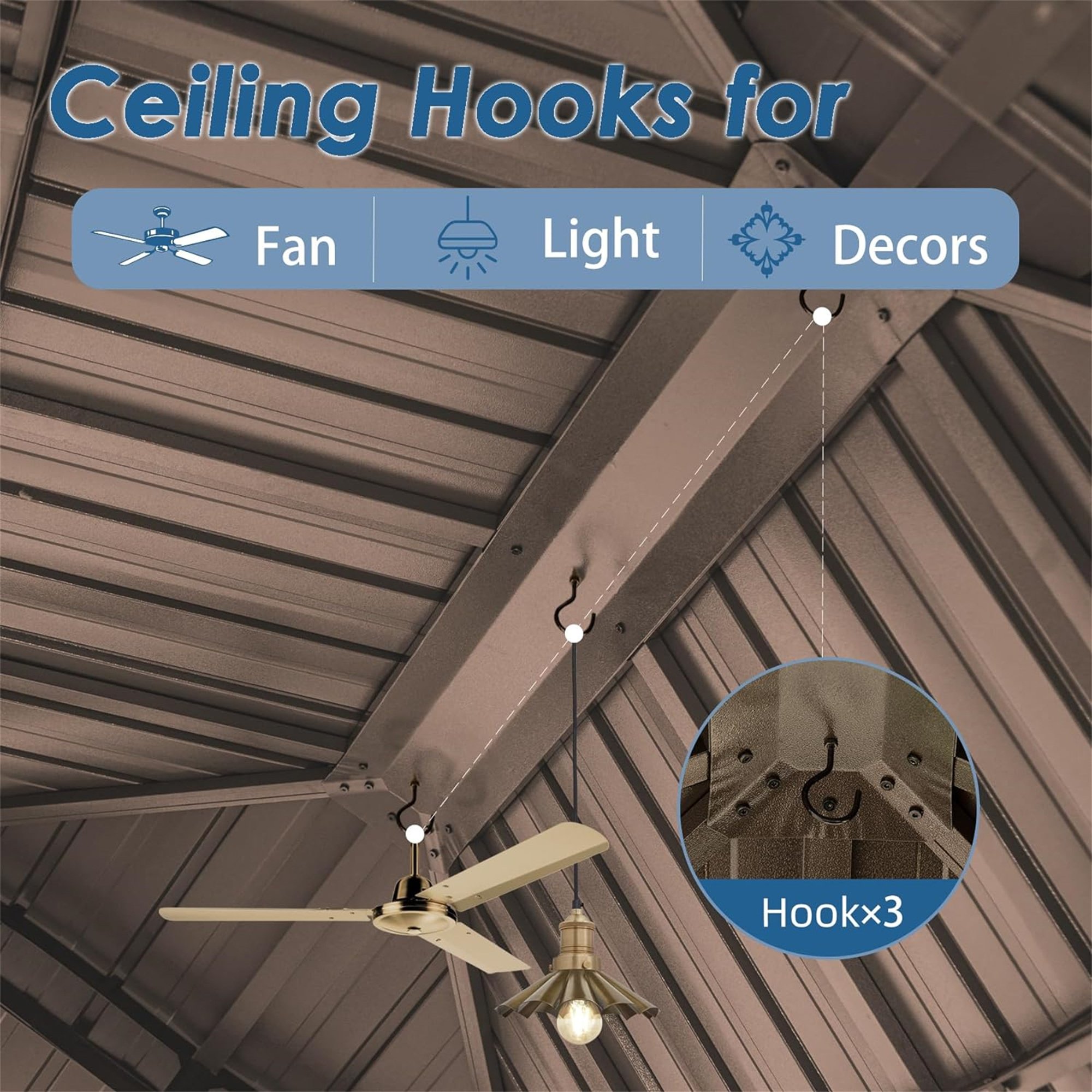Effortless Ambiance with Strong Hooks - Enhance your hardtop gazebo's versatility with 3 robust hooks! Each hook effortlessly holds up to 20 lbs, allowing you to hang lights, fans, or decorations effortlessly. Create your perfect outdoor atmosphere with ease.