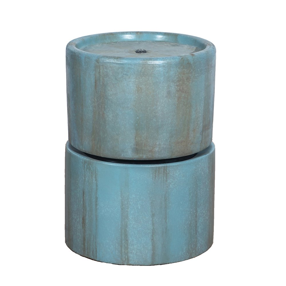 A contemporary upgrade to a patio or garden, this outdoor water fountain has a simple pillar design and a green finish. Its made of durable cement and features gentle water movement. Add this transitional pillar fountain to any outdoor space: a lawn, deck, or gazebo.