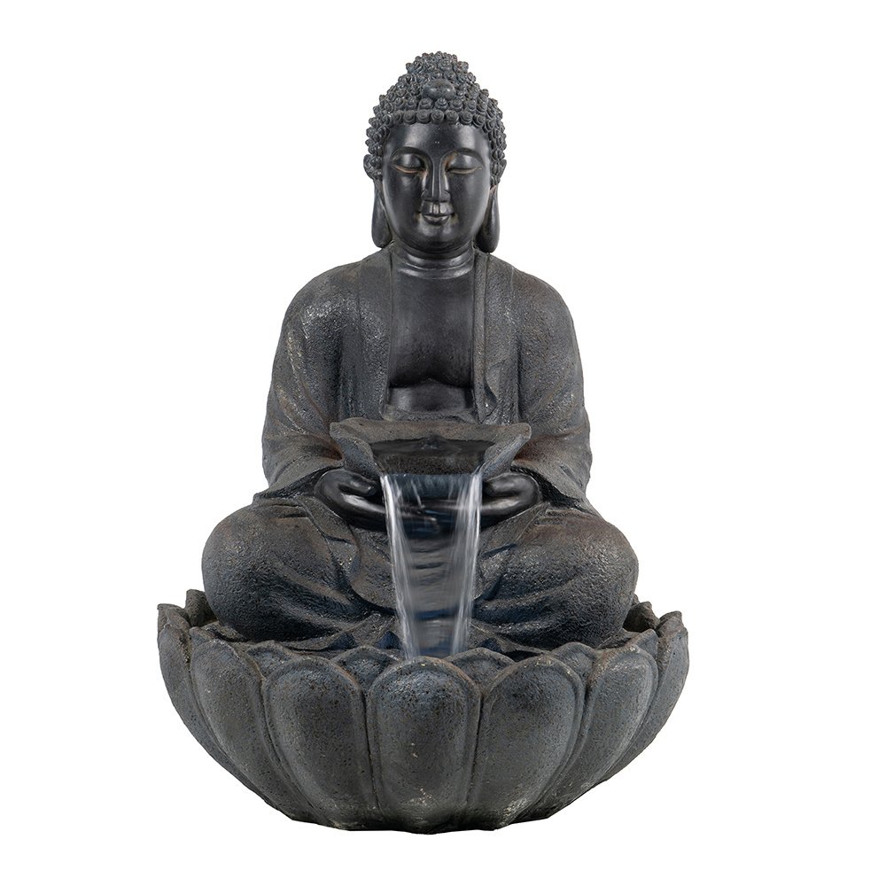 Perfect for a garden, this Buddha water fountain has a brown finish and an eye-catching design that brings transitional style to outdoor spaces. This lawn water feature is made of durable polyresin. Place it near a chair or bench on your patio to enjoy the soothing sound of running water.