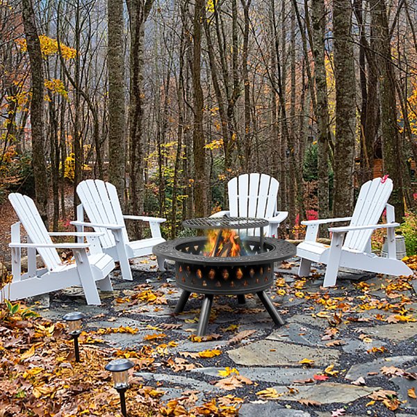 Home > 38in Metal Fire Pit with Cooking Grates Black