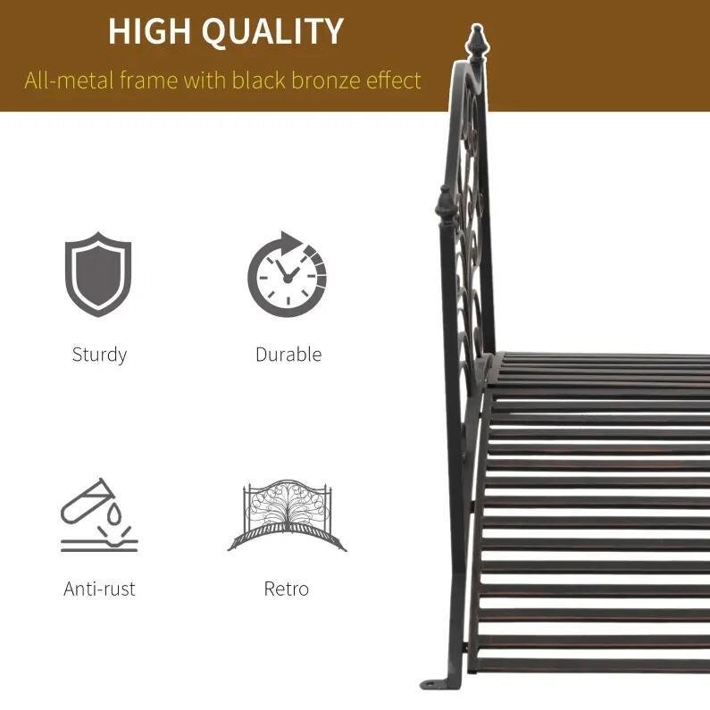 4' Metal Arch Backyard Garden Bridge with Safety Siderails, Delicate Scrollwork, & Easy Assembly, Black Bronze