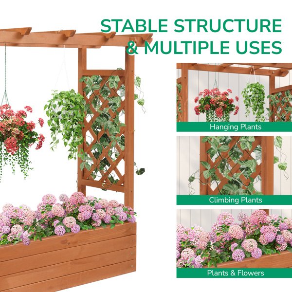 43.5*17.5*44.5 In Fir With Arched Lattice Raised Garden Bed Wooden Planting Frame Teak Color