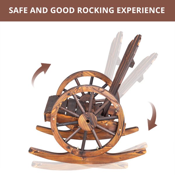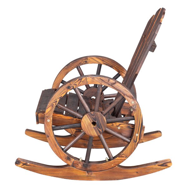 Home > 60*89*94cm Garden Outdoor Fir with Wooden Wheel Wooden Rocking Chair Carbonized Color