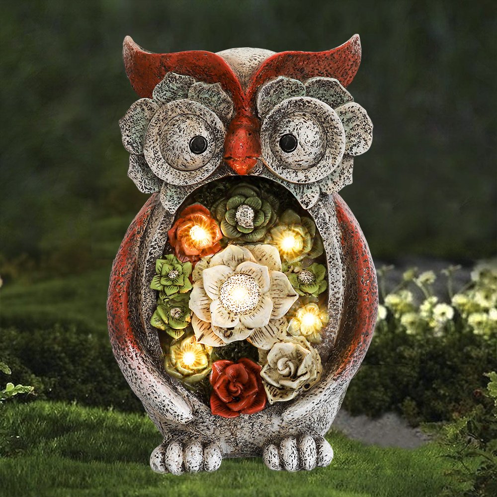 Home > Garden Statue Owl Figurines,Solar Powered Resin Animal Sculpture with 5 Led Lights for Patio,Lawn, Garden Decor
