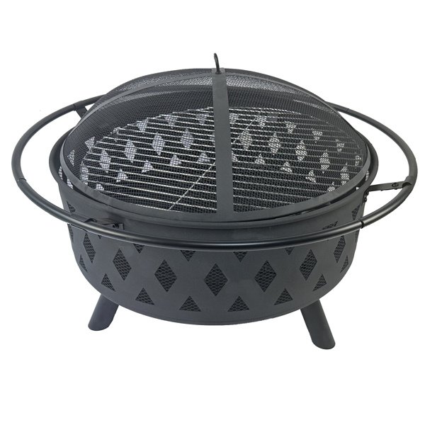 PRACTICAL DESIGN – The powder-coated fire bowl is an ideal blend of modern design and natural elements with its star and moon shape cutouts. With a safety handle, mesh spark cover, log grate, and fire poker, this bonfire pit is fun for the whole family.