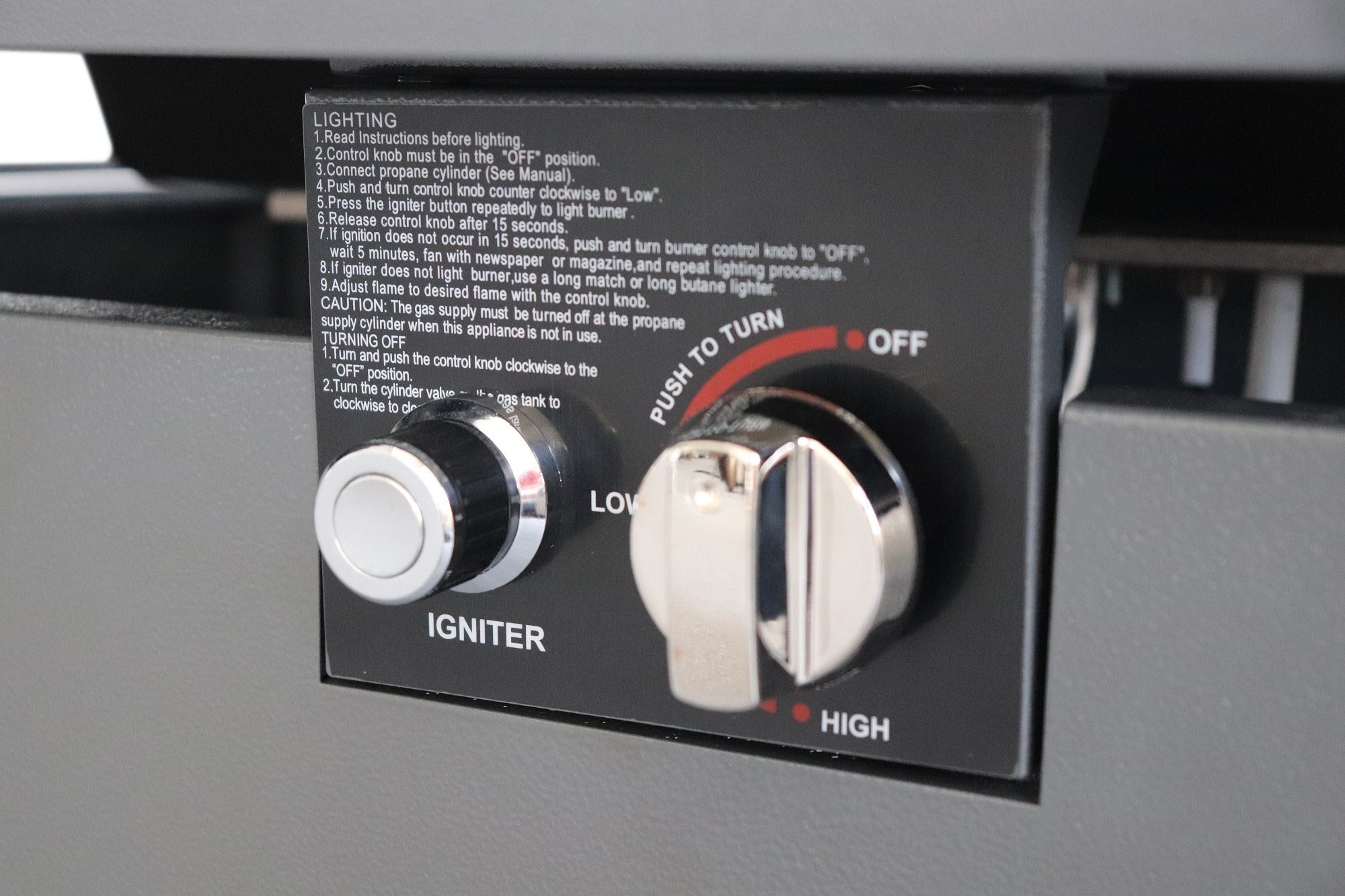 FeaturesProduct TypeFire pit tableExterior MaterialSteelBurning Area MaterialStainless SteelPowder Coated FinishYesFuel TypePropane; Natural gasPieces IncludedN/AGas Conversion FeatureYesGas Conversion Kit IncludedNoAdjustable FlameYesIgnition TypePush-buttonBTU Output50000 BTUCompatible Filler TypeLava RocksFoldableNoPortableNoFire Pit Lid IncludedYesCover IncludedYesSpark Screen IncludedNoLog Grate IncludedNoLocationOutdoor Use OnlyGlass Shield IncludedYesHidden Fuel TankYesBatteries RequiredYesOverall ShapeRectangleSupplier Intended and Approved UseResidential Use; Non Residential UseBattery or Batteries IncludedYesDurabilityRust Resistant; Heat ResistantColorBlackCover MaterialPolyesterAssemblyAssembly RequiredYesInstallation RequiredYesWarrantyCommercial WarrantyYesProduct WarrantyYesWarranty Length1 YearFull or Limited WarrantyLimited
