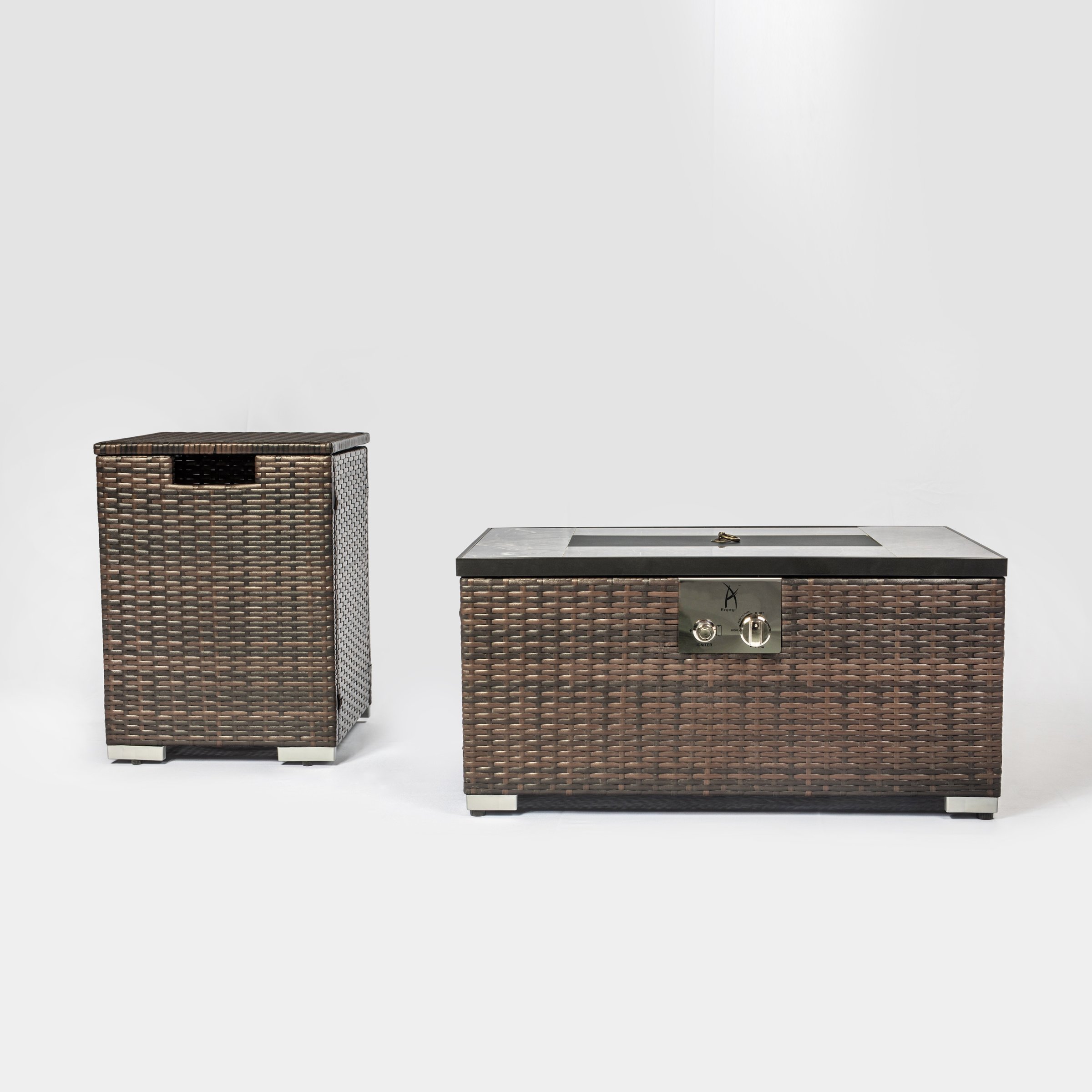 Rattan Gas Fire Pit Table with Propane Tank Cover
