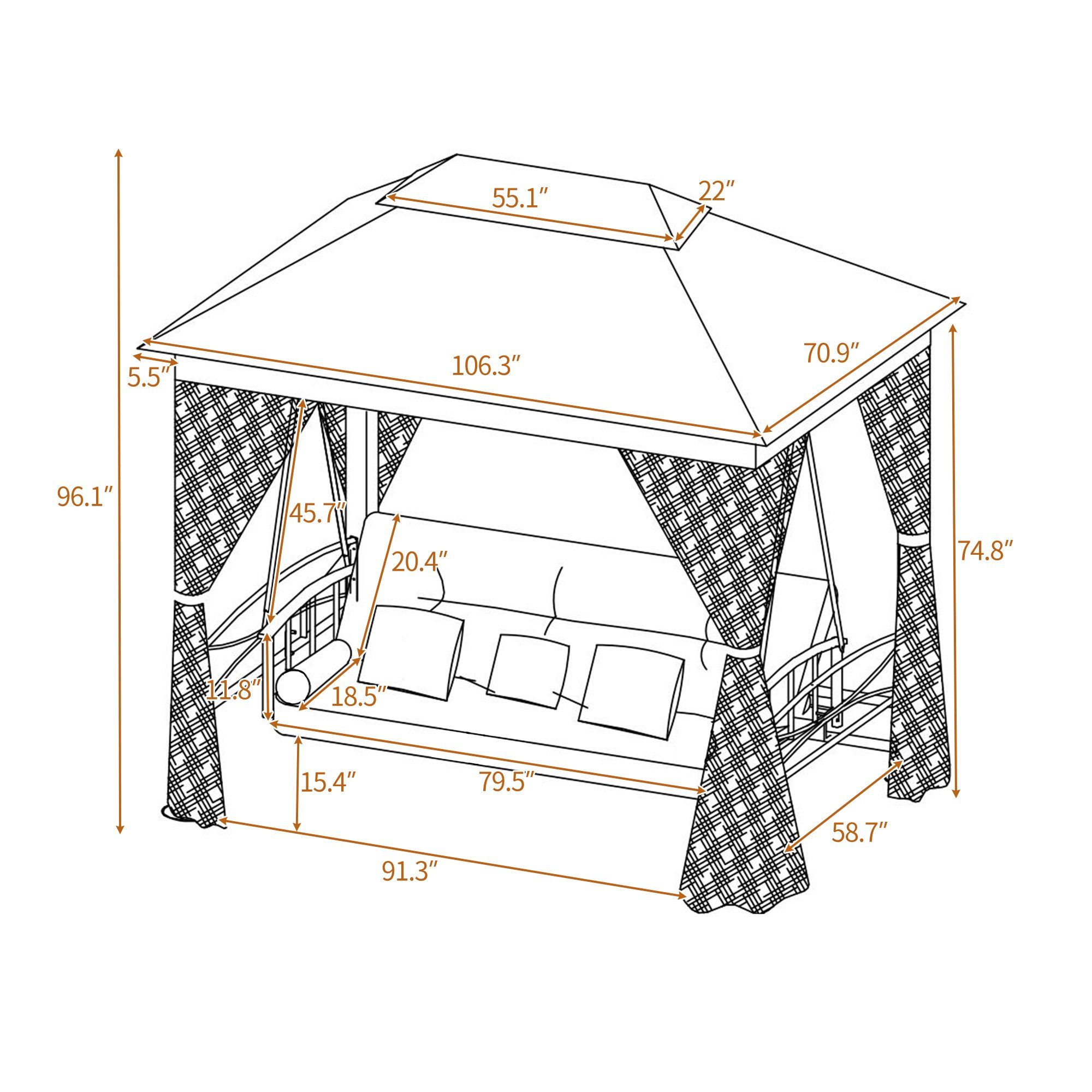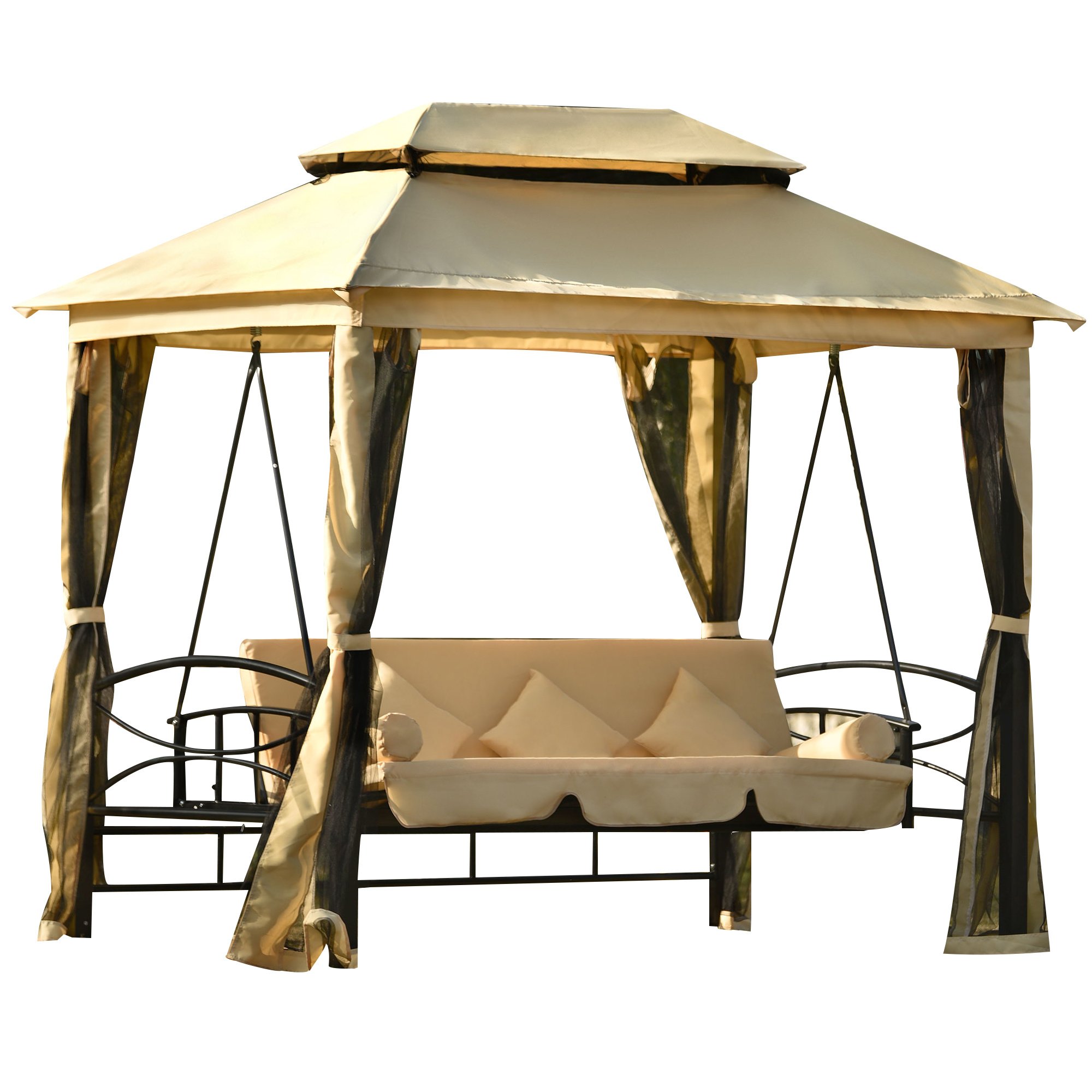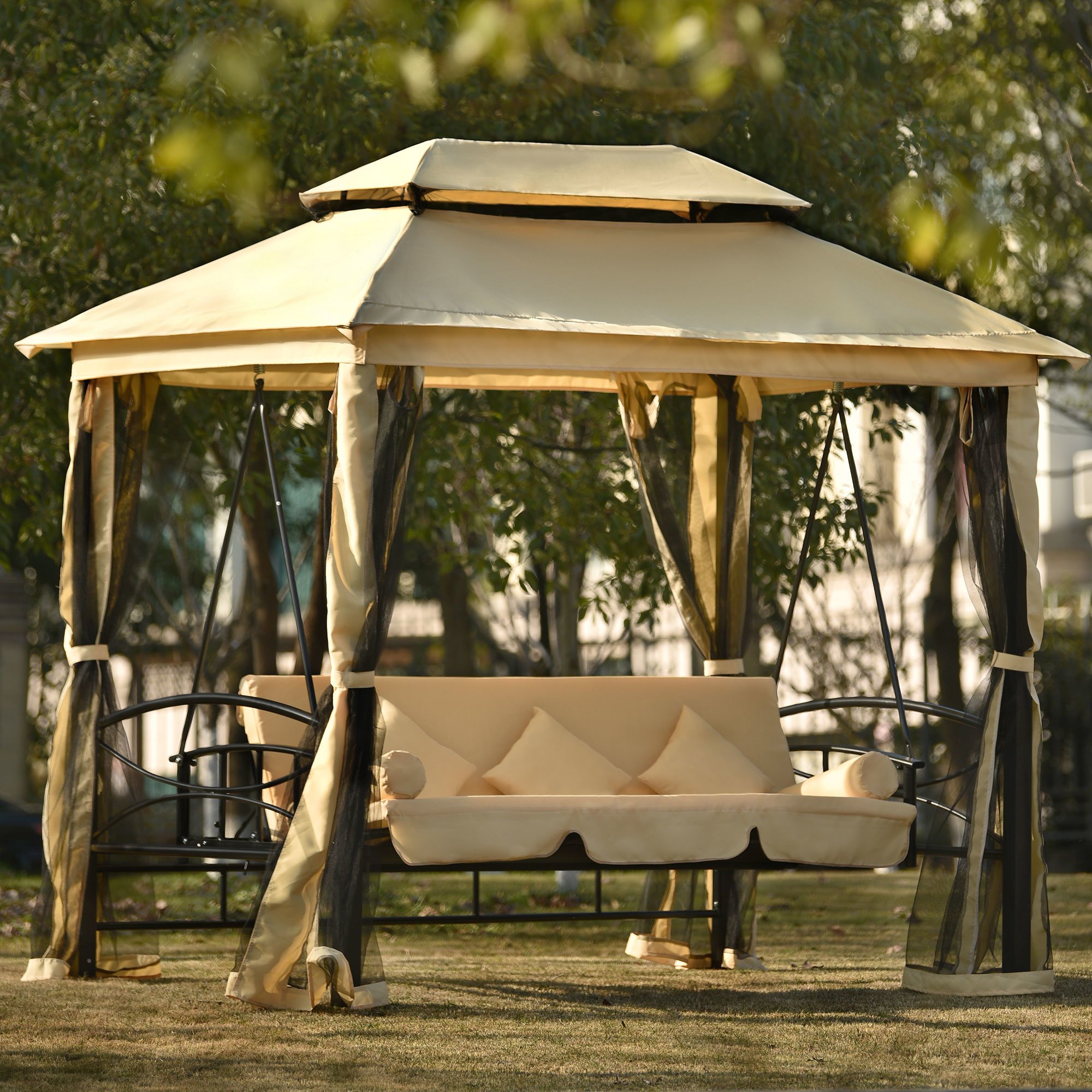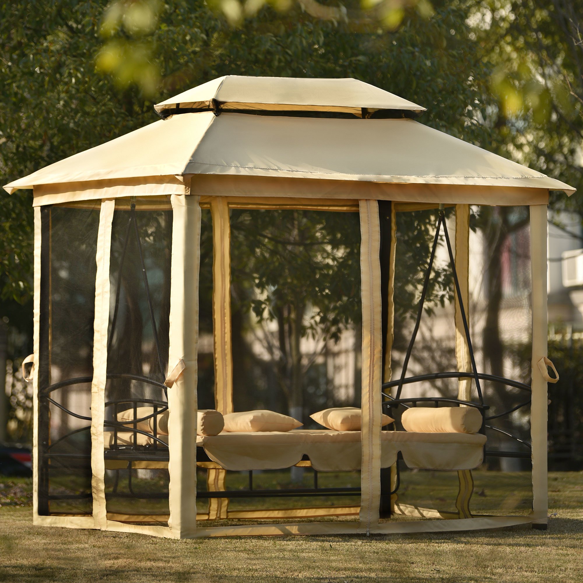 > [VIDEO provided] U_STYLE 8.9 Ft. W x 5.9 Ft. D Outdoor Gazebo with Convertible Swing Bench, Double Roof Soft Canopy Garden Backyard Gazebo with Mosqui