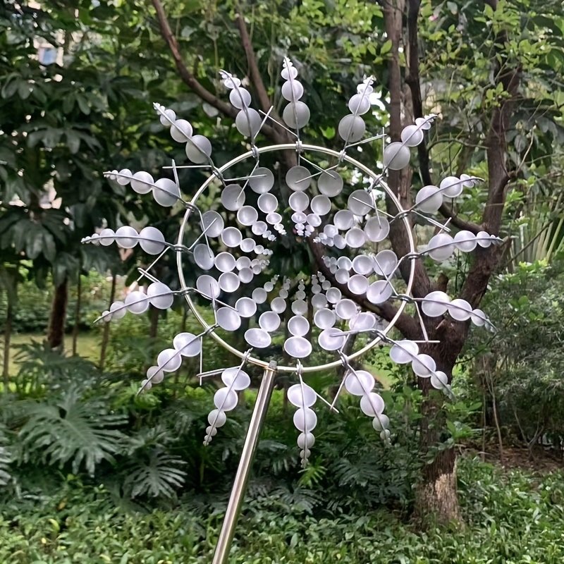 30cm/11.81in Courtyard Garden Lawn Outdoor Decoration, Unique Wind Collector Magic Kinetic Energy Metal Windmill Spinner Solar Wind Catcher