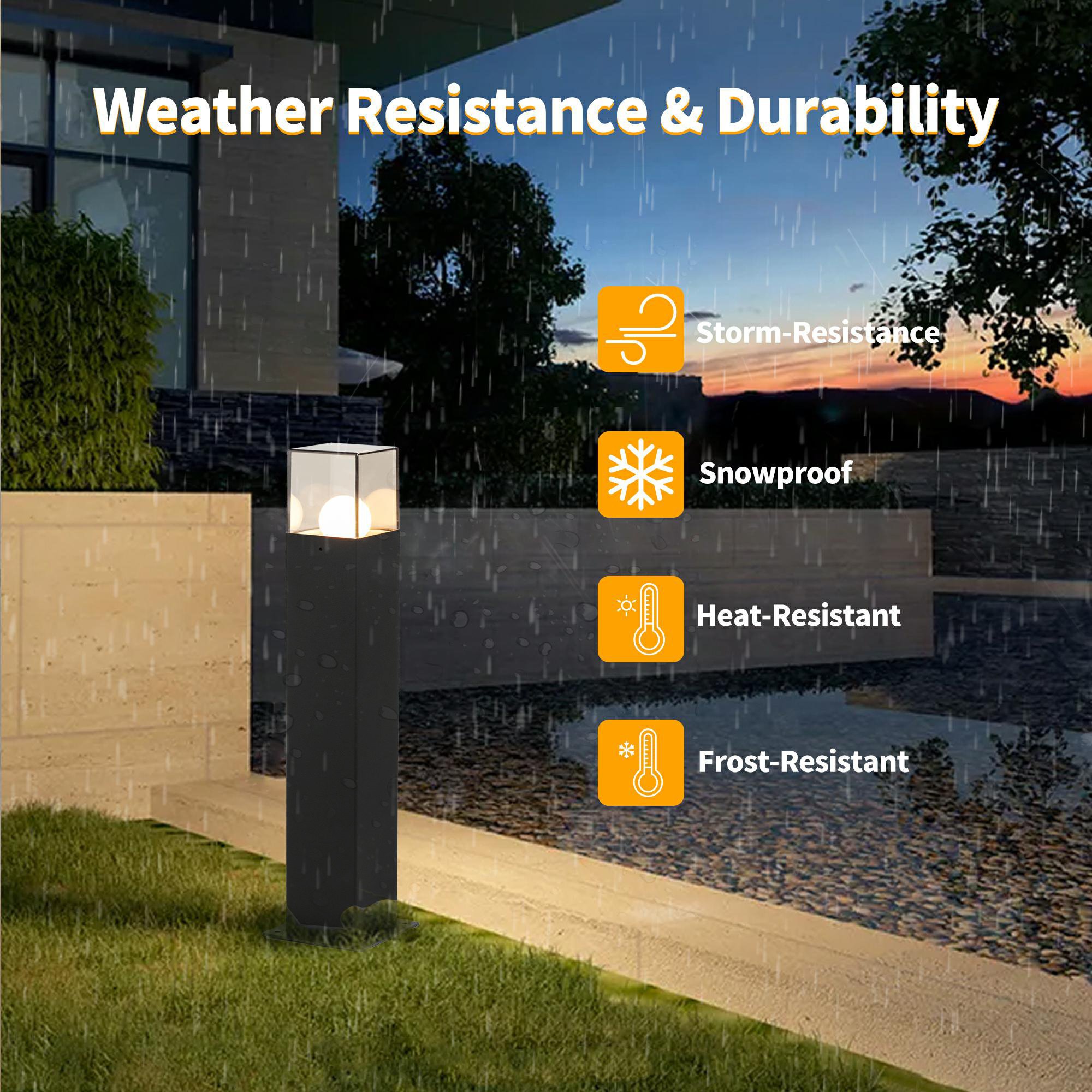 Our elegant and classic outdoor lighting design comes from well-known European designers. Many of our exterior lighting equipment have won the German Red Dot Design Award many times. This LED bollard lamp is made of 100% heavy duty die cast aluminum; which has shock power; long service life; rated life of more than 50000 hours; and is more durable.