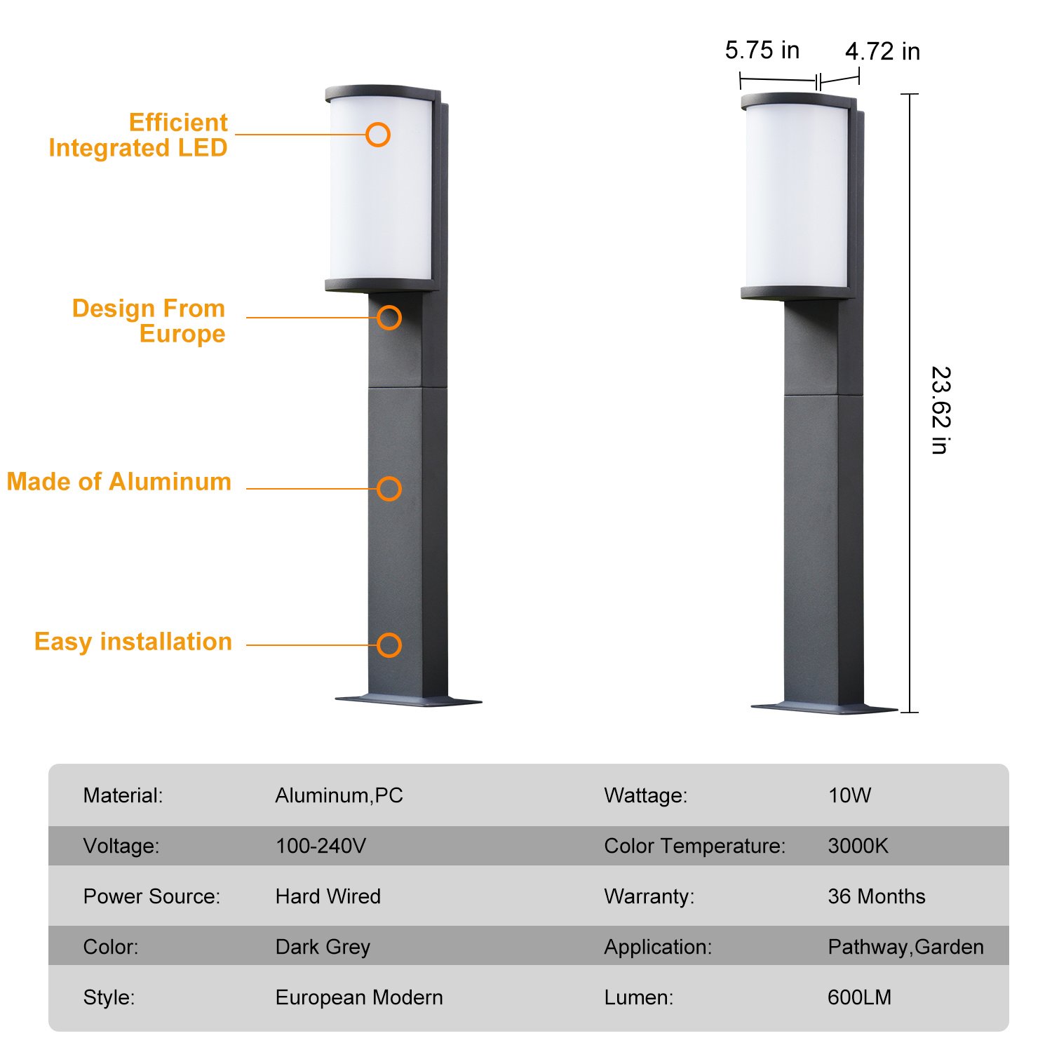 Modern design: high quality die-cast aluminum and PC lampshade; fashionable and simple style design; outdoor channel light can be easily matched with other decorations; in line with contemporary aesthetics.