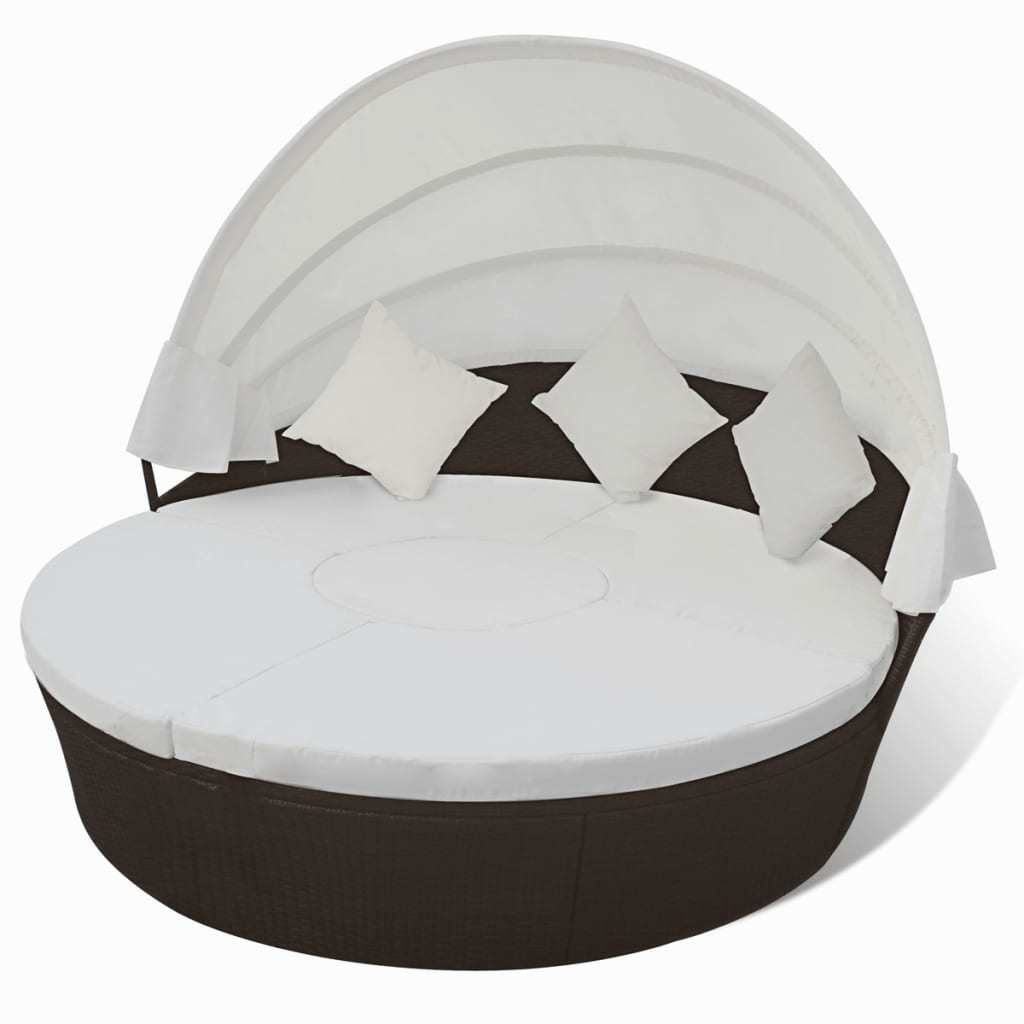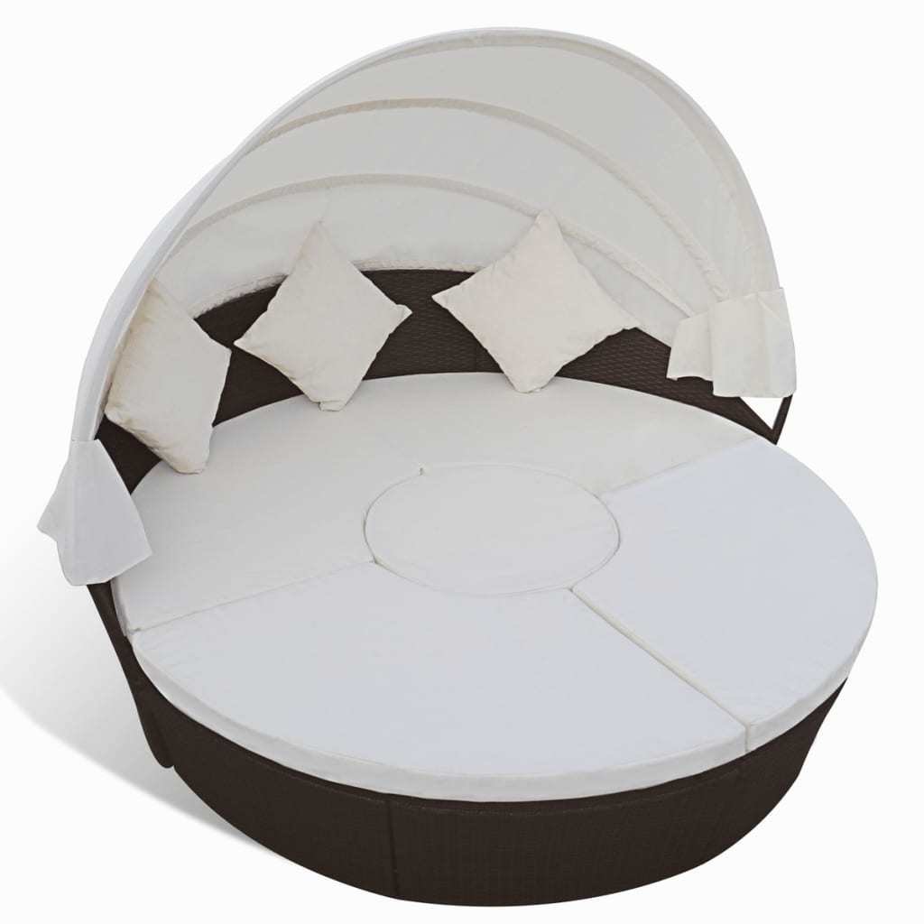 Home > Patio Lounge Bed with Canopy Poly Rattan Brown