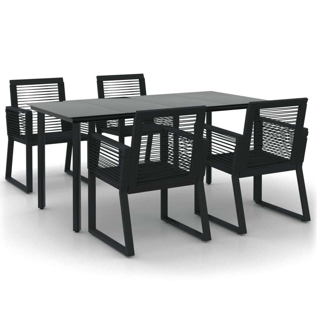 5 Piece Patio Dining Set Black PVC Rattan
