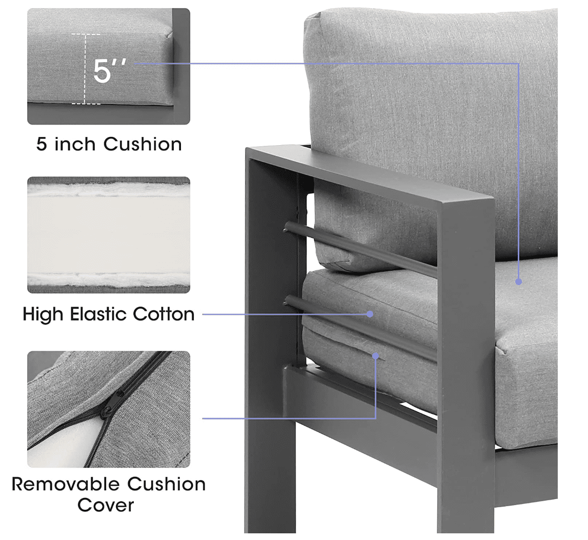 Covering the top of the outdoor seating baseplate, the thickened-at-waist profile back cushions provide 5 inches foam padding as you sit while encouraging proper posture.