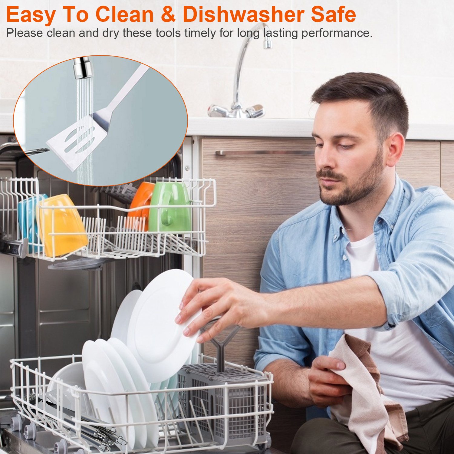 **Premium Stainless Steel*:Each barbecue tool is made from high stainless steel which is rust resistant for long-lasting reliability. Stainless steel tools are also more durable than wood alternatives as they will not crack after extended use.