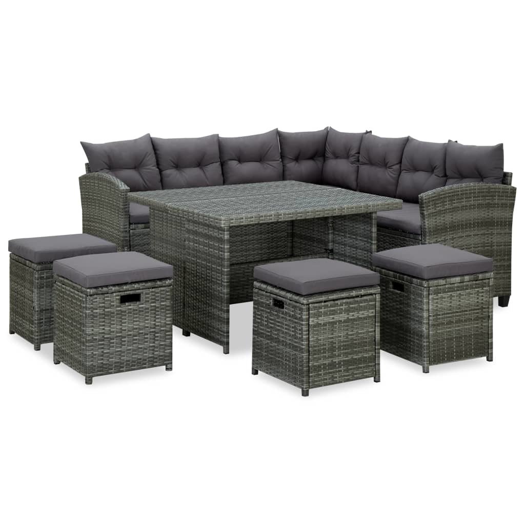 6 Piece Patio Lounge Set with Cushions Poly Rattan Gray