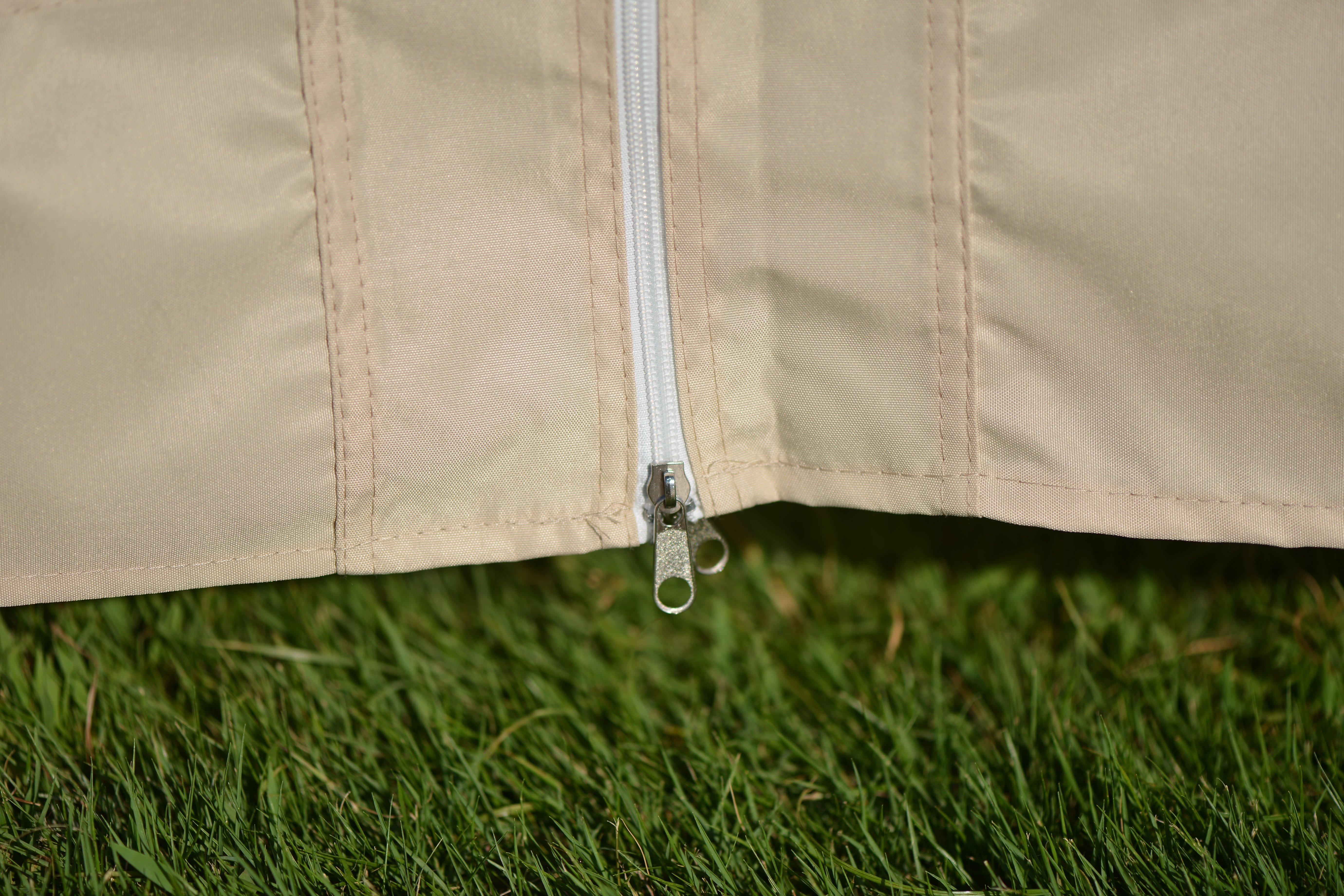 Keep your outdoor events looking classy with this polished gazebo inspired canopy tent that will instantly upgrade your outdoor activity experience. Eye-catching in design; this canopy is crafted with a heavy-duty sleek black steel frame with upper welded designs that pairs beautifully with the beige color scheme.