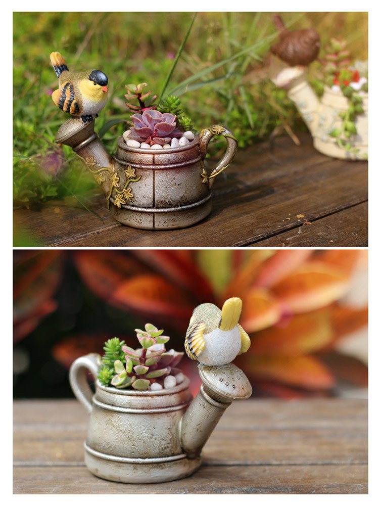 Home > Retro Birds Succulent Planter Pot Small Resin Cactus Herb Plant Pot Container, Rusty Silver