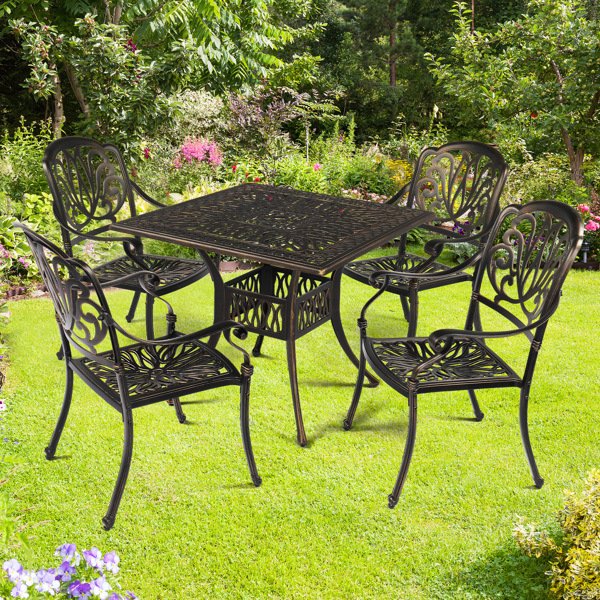 5. Exquisite Design: The hollowed-out floral pattern on the backrest and the antique bronze finish add an elegant touch to your outdoor space.