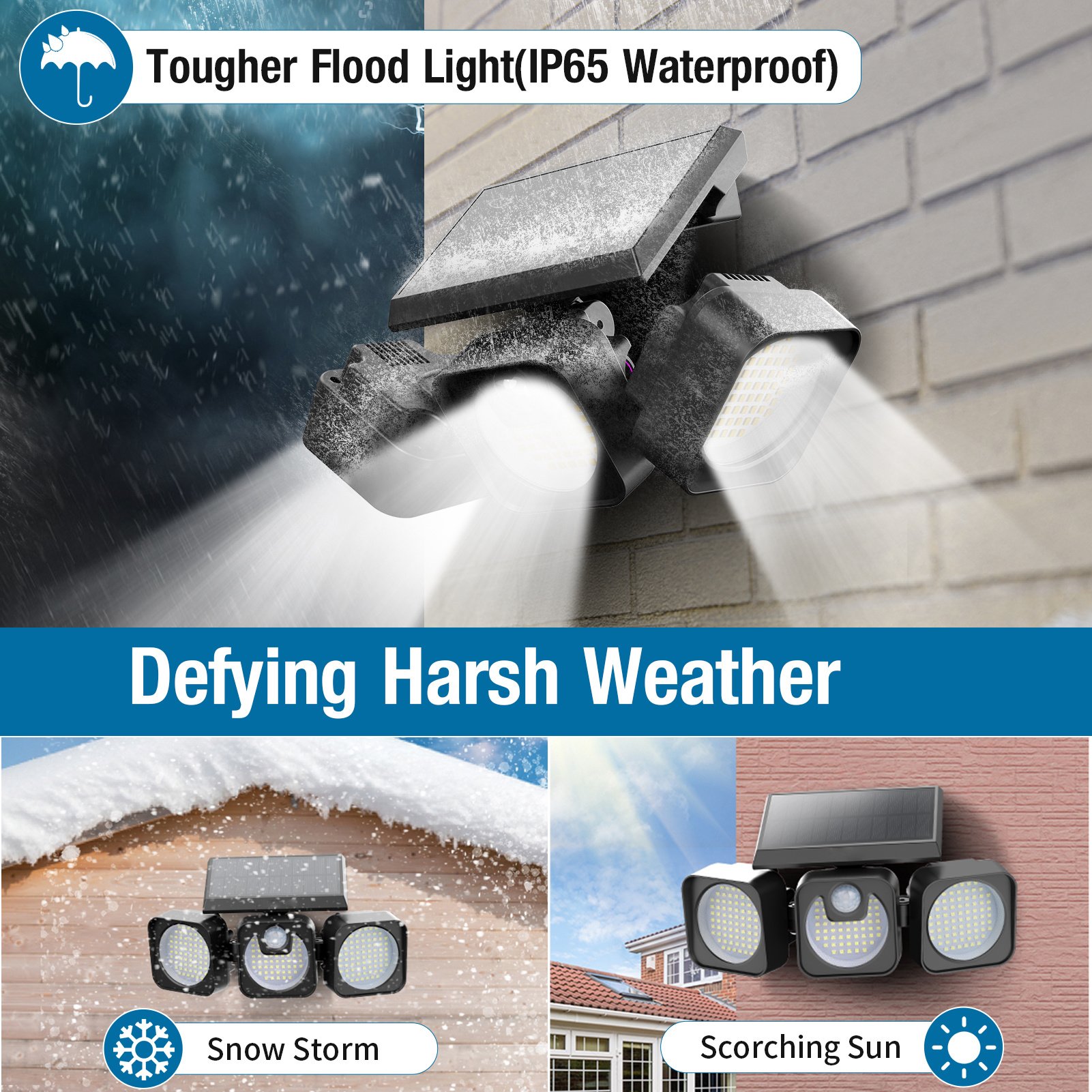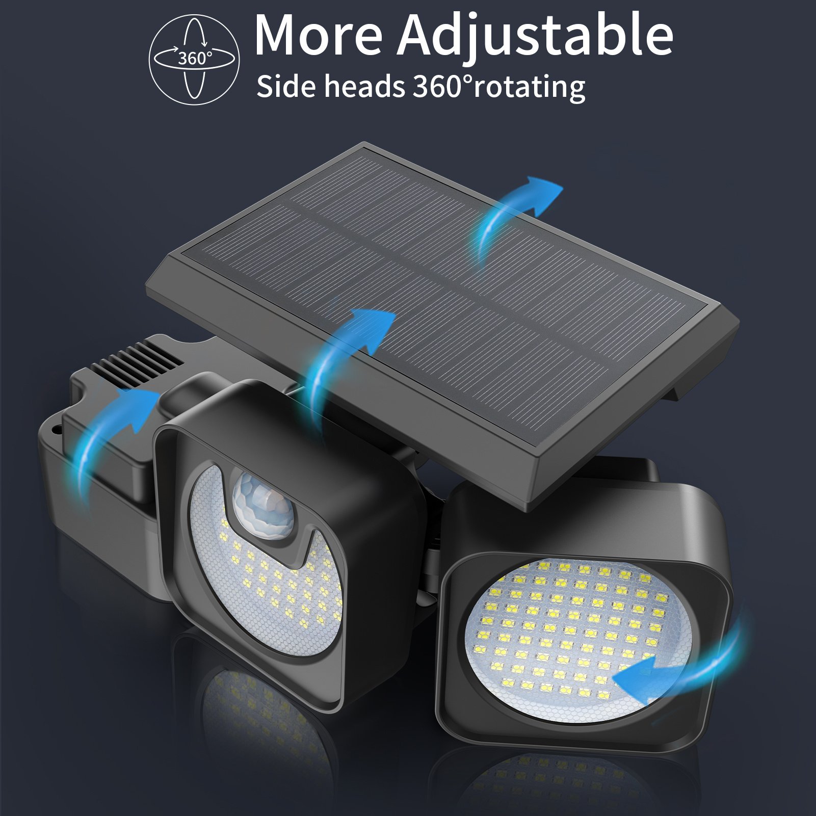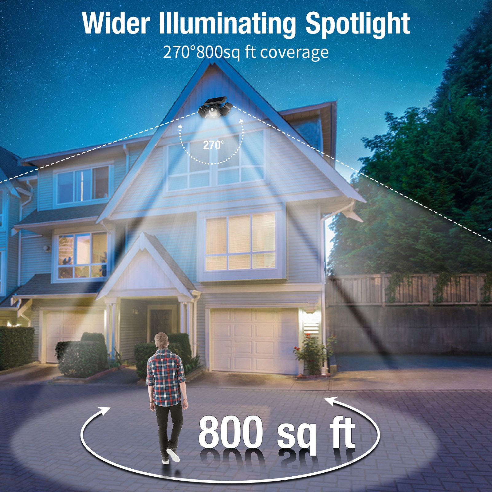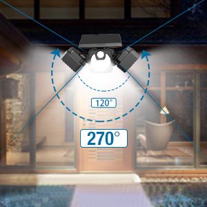 [Rotable Design]- 3 heads of solar security lights can be rotated 270°to meet your requirement; covering 1000ft²area; provides your illumination for security and safety protection.
