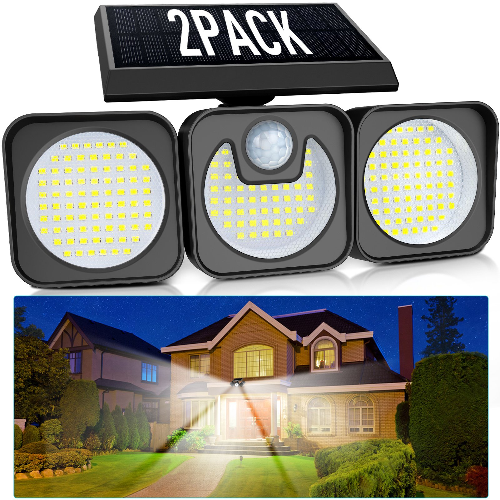 Solar Flood Light Outdoor 218 LED 2000LM; 6500K - 270°Adjustable 3 Heads Solar Light; Motion Sensor 26ft; Waterproof IP65 Solar Powered